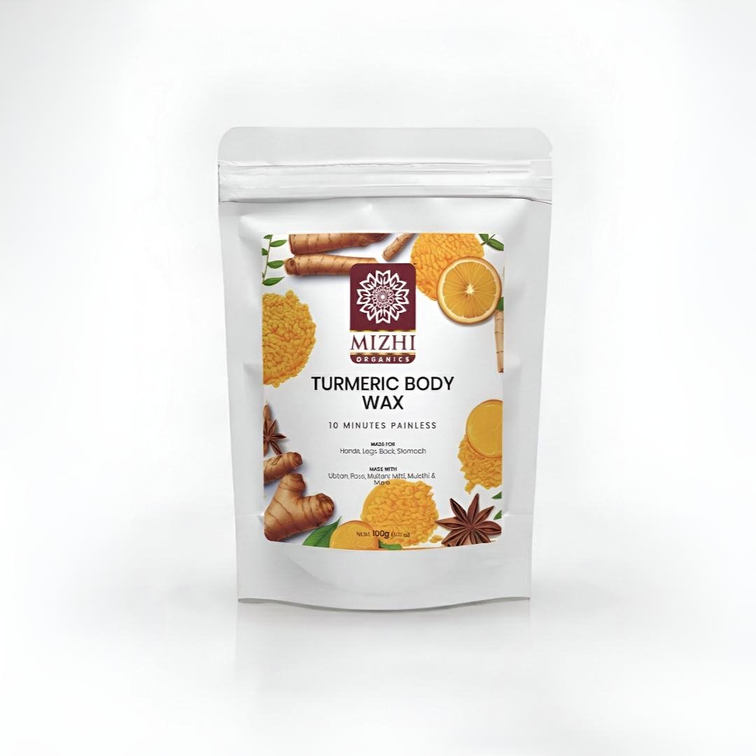 Experience painless, natural hair removal in just 10 minutes with MIZHI Organics Turmeric Body Wax. This herbal powder blend, enriched with Turmeric, Ubtan, Rose, and Multani Mitti, mixes easily with water to gently remove unwanted hair from your hands, legs, back, and stomach. Achieve smooth, glowing skin with this vegan and cruelty-free formula.
